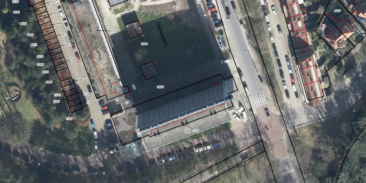 Het perceel waarop Oremusplein 3 staat heeft een oppervlakte van 1234 m². Dit is een zeer groot perceel. De perceeloppervlakte wordt geregistreerd door het Kadaster. Gedetailleerde informatie over de maten van dit perceel kunt u vinden in het rapport Kadastrale kaart met maatvoering van Oremusplein 3.