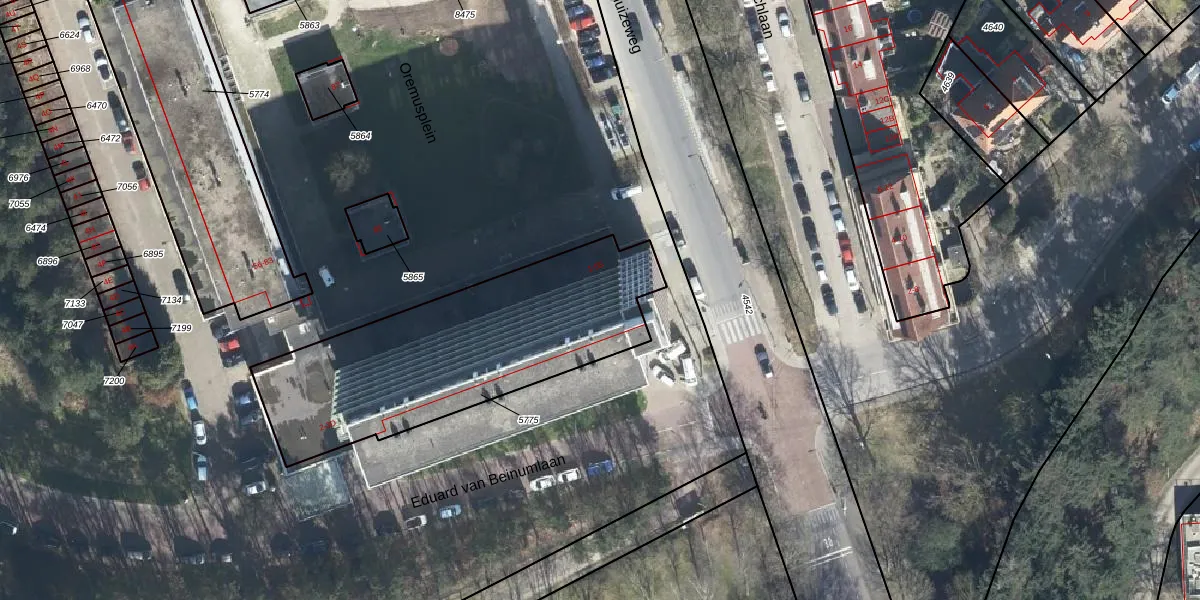 Het perceel waarop Oremusplein 35 staat heeft een oppervlakte van 1234 m². Dit is een zeer groot perceel. De perceeloppervlakte wordt geregistreerd door het Kadaster. Gedetailleerde informatie over de maten van dit perceel kunt u vinden in het rapport Kadastrale kaart met maatvoering van Oremusplein 35.
