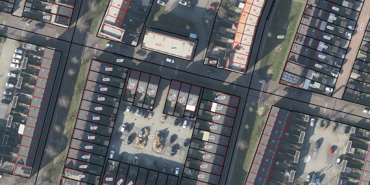 Gebruik de zoekbalk of klik op een perceel voor informatie over de adressen binnen dit perceel.