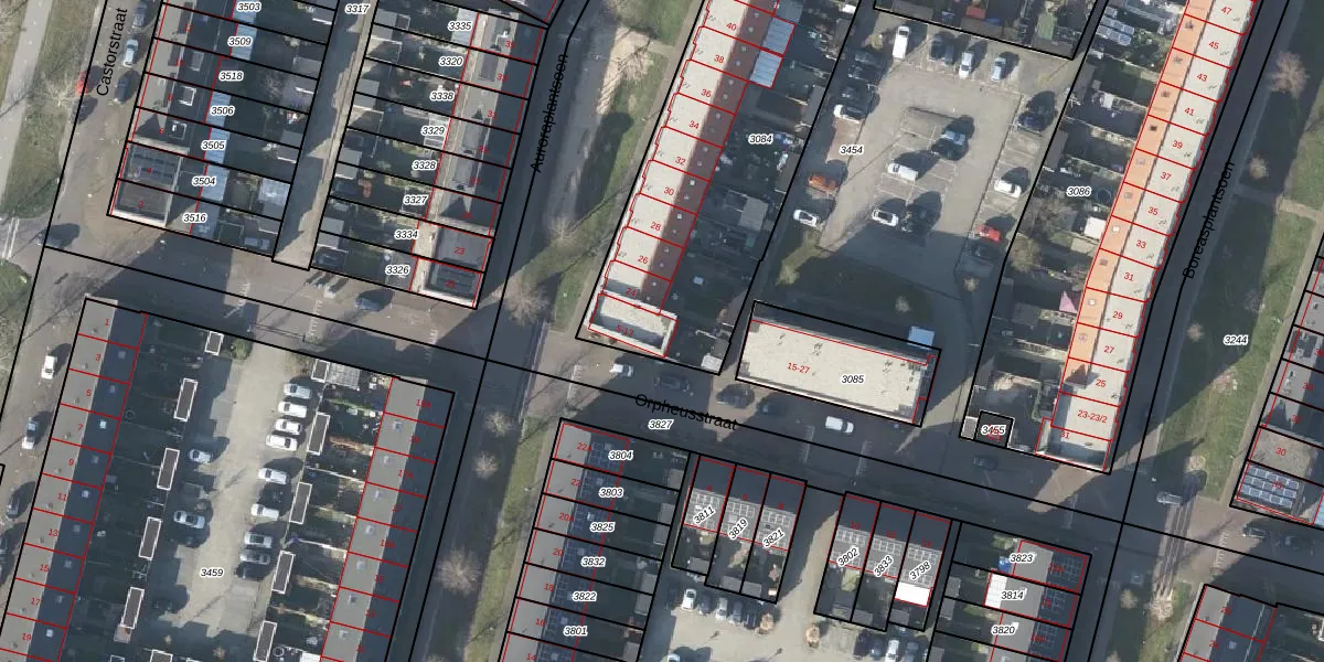 Het perceel waarop Orpheusstraat 13 staat heeft een oppervlakte van 2634 m². Dit is een zeer groot perceel. De perceeloppervlakte wordt geregistreerd door het Kadaster. Gedetailleerde informatie over de maten van dit perceel kunt u vinden in het rapport Kadastrale kaart met maatvoering van Orpheusstraat 13.