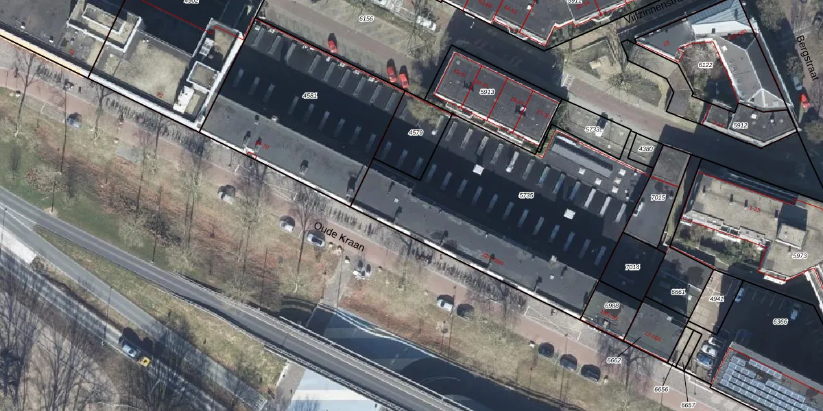 Het perceel waarop Oude Kraan 30-4 staat heeft een oppervlakte van 1945 m². Dit is een zeer groot perceel. De perceeloppervlakte wordt geregistreerd door het Kadaster. Gedetailleerde informatie over de maten van dit perceel kunt u vinden in het rapport Kadastrale kaart met maatvoering van Oude Kraan 30-4.