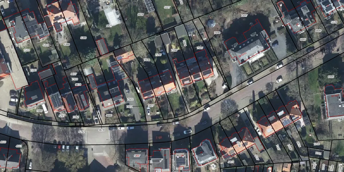 Het perceel waarop Oude Velperweg 21 staat heeft een oppervlakte van 450 m². Dit is een groot perceel. De perceeloppervlakte wordt geregistreerd door het Kadaster. Gedetailleerde informatie over de maten van dit perceel kunt u vinden in het rapport Kadastrale kaart met maatvoering van Oude Velperweg 21.
