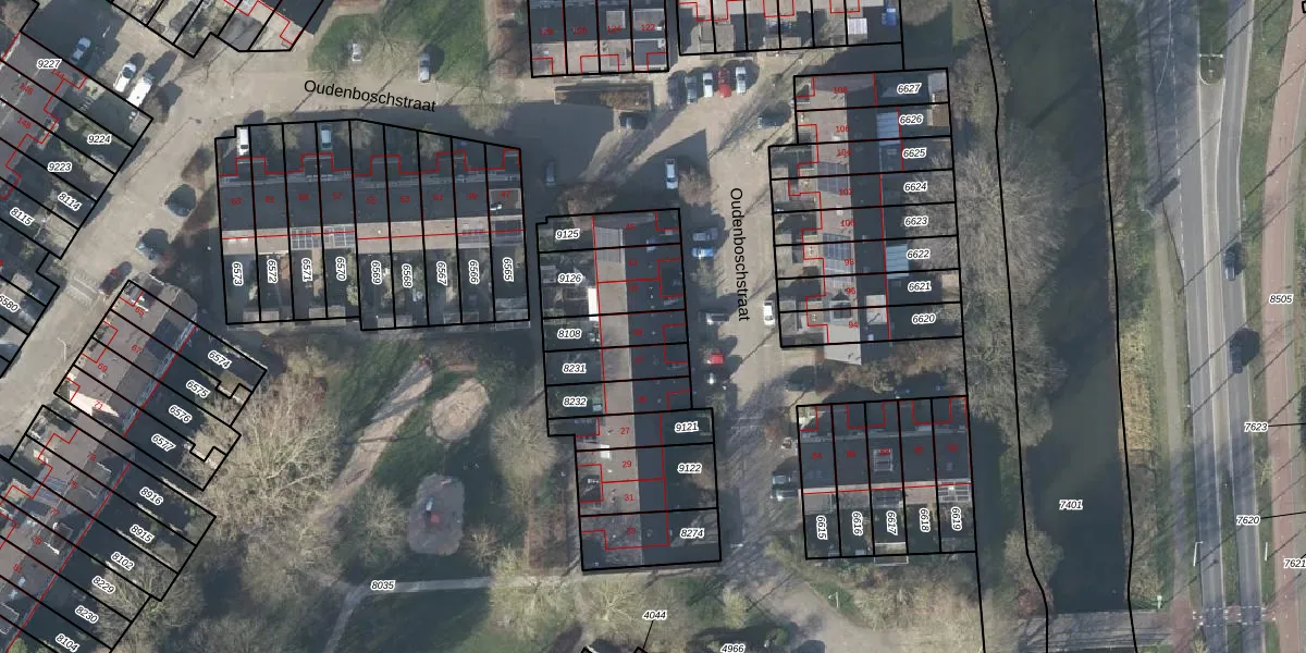 Het perceel waarop Oudenboschstraat 39 staat heeft een oppervlakte van 113 m². Dit is een middelgroot perceel. De perceeloppervlakte wordt geregistreerd door het Kadaster. Gedetailleerde informatie over de maten van dit perceel kunt u vinden in het rapport Kadastrale kaart met maatvoering van Oudenboschstraat 39.