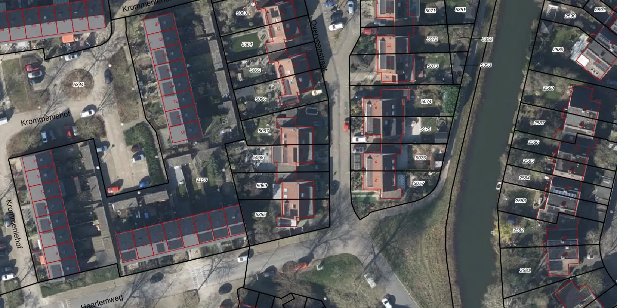 Overveenstraat 5 is gelegen op kadastraal perceel AHM03AC5068. Deze kadastrale aanduiding is uniek en wordt gebruikt door het Kadaster om eigendomsrechten en andere zakelijke rechten vast te leggen. Het perceel maakt onderdeel uit van de kadastrale gemeente Arnhem.