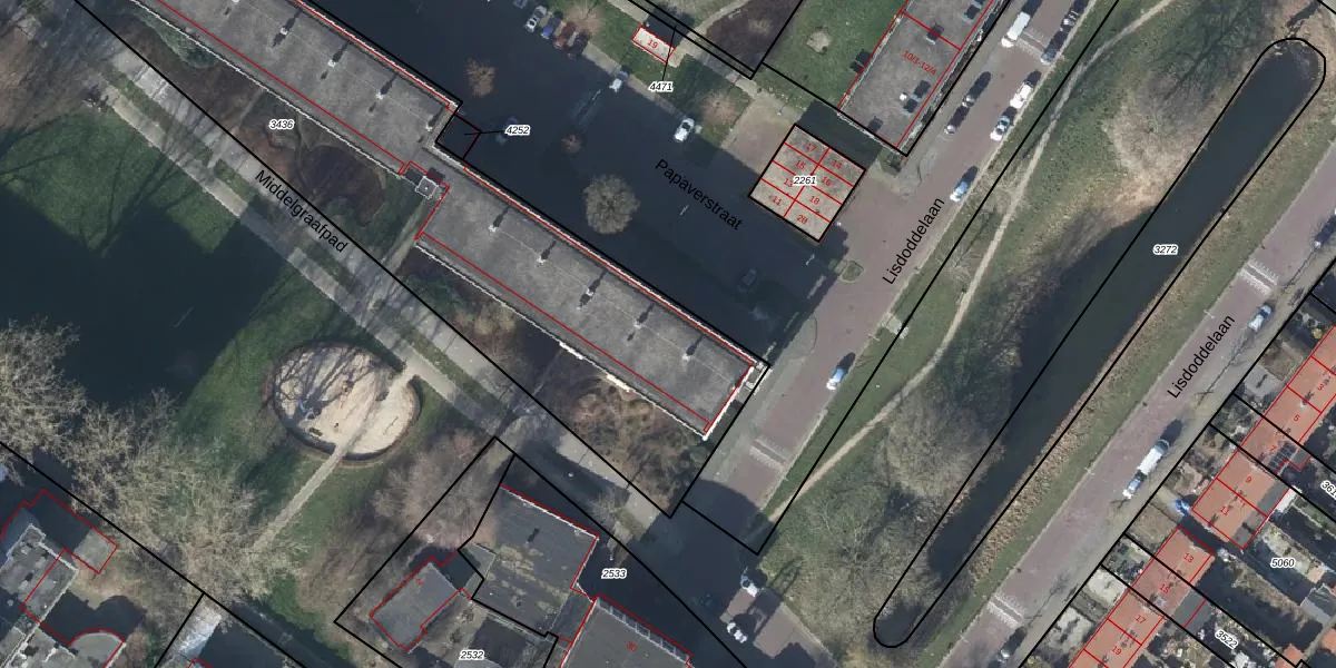 Het perceel waarop Papaverstraat 100 staat heeft een oppervlakte van 4067 m². Dit is een zeer groot perceel. De perceeloppervlakte wordt geregistreerd door het Kadaster. Gedetailleerde informatie over de maten van dit perceel kunt u vinden in het rapport Kadastrale kaart met maatvoering van Papaverstraat 100.