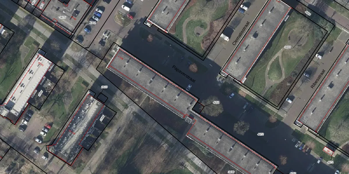 Het perceel waarop Papaverstraat 2-I staat heeft een oppervlakte van 4067 m². Dit is een zeer groot perceel. De perceeloppervlakte wordt geregistreerd door het Kadaster. Gedetailleerde informatie over de maten van dit perceel kunt u vinden in het rapport Kadastrale kaart met maatvoering van Papaverstraat 2-I.
