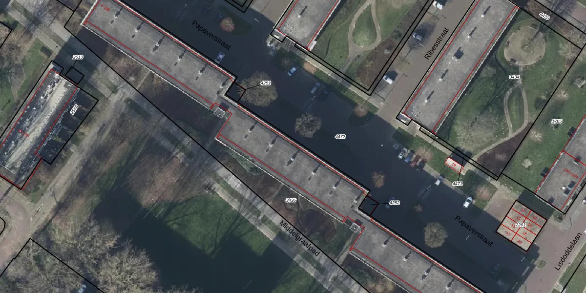 Het perceel waarop Papaverstraat 38-F staat heeft een oppervlakte van 4067 m². Dit is een zeer groot perceel. De perceeloppervlakte wordt geregistreerd door het Kadaster. Gedetailleerde informatie over de maten van dit perceel kunt u vinden in het rapport Kadastrale kaart met maatvoering van Papaverstraat 38-F.