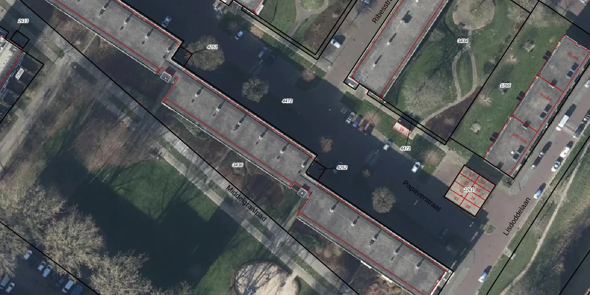 Het perceel waarop Papaverstraat 38-K staat heeft een oppervlakte van 4067 m². Dit is een zeer groot perceel. De perceeloppervlakte wordt geregistreerd door het Kadaster. Gedetailleerde informatie over de maten van dit perceel kunt u vinden in het rapport Kadastrale kaart met maatvoering van Papaverstraat 38-K.