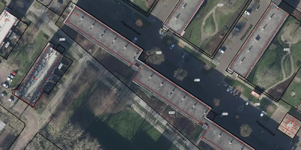 Het perceel waarop Papaverstraat 42 staat heeft een oppervlakte van 4067 m². Dit is een zeer groot perceel. De perceeloppervlakte wordt geregistreerd door het Kadaster. Gedetailleerde informatie over de maten van dit perceel kunt u vinden in het rapport Kadastrale kaart met maatvoering van Papaverstraat 42.