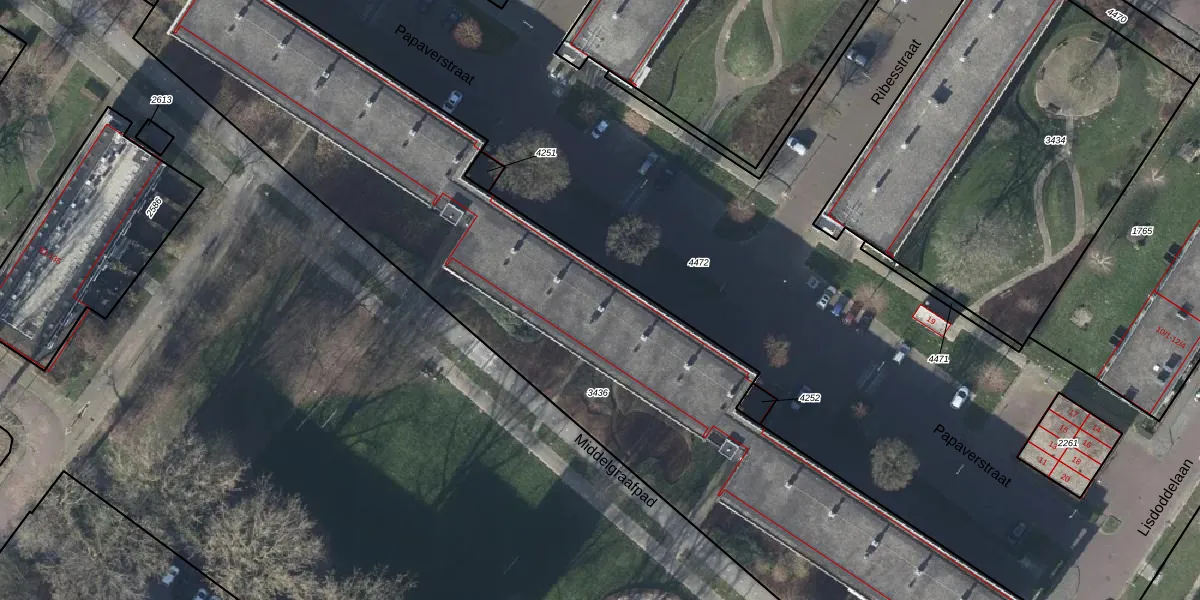 Het perceel waarop Papaverstraat 54 staat heeft een oppervlakte van 4067 m². Dit is een zeer groot perceel. De perceeloppervlakte wordt geregistreerd door het Kadaster. Gedetailleerde informatie over de maten van dit perceel kunt u vinden in het rapport Kadastrale kaart met maatvoering van Papaverstraat 54.
