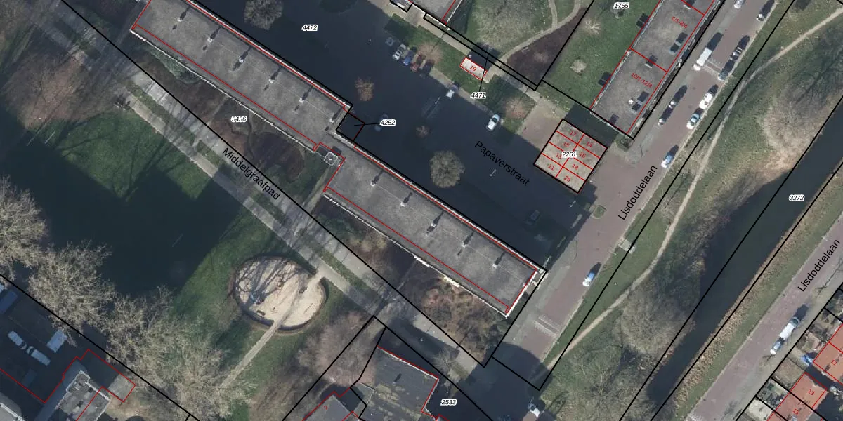 Het perceel waarop Papaverstraat 88 staat heeft een oppervlakte van 4067 m². Dit is een zeer groot perceel. De perceeloppervlakte wordt geregistreerd door het Kadaster. Gedetailleerde informatie over de maten van dit perceel kunt u vinden in het rapport Kadastrale kaart met maatvoering van Papaverstraat 88.