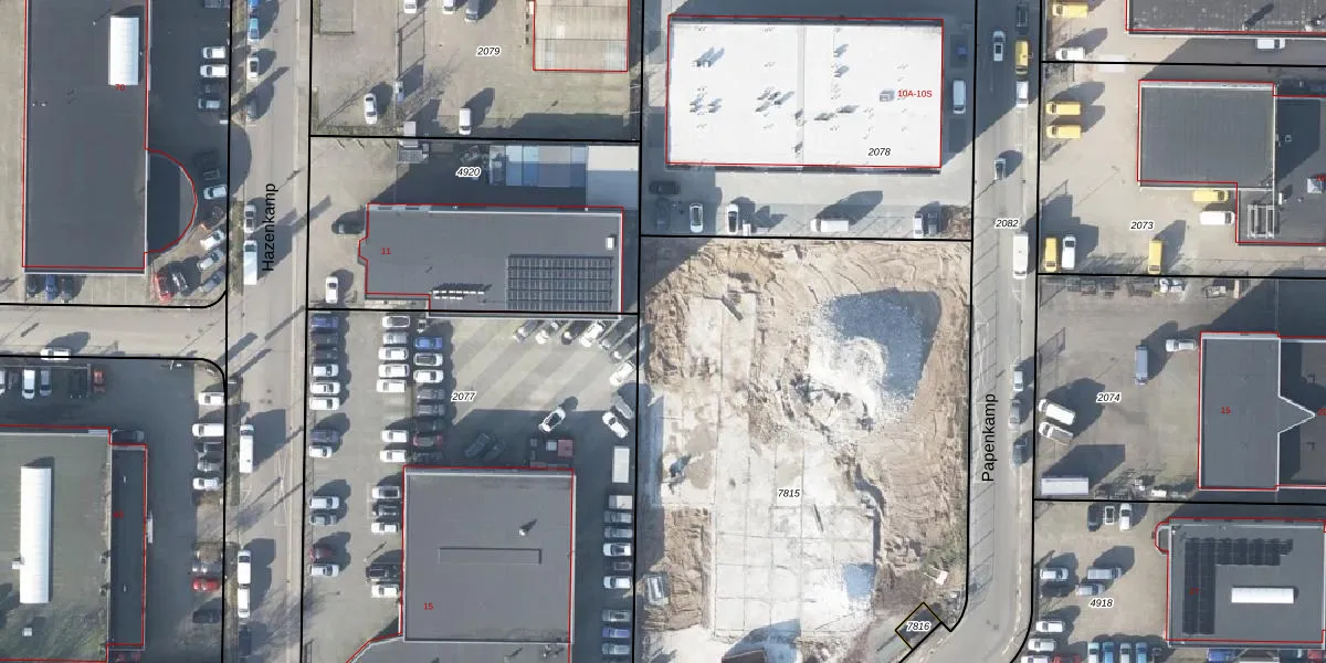 Het perceel waarop Papenkamp 20-A staat heeft een oppervlakte van 3758 m². Dit is een zeer groot perceel. De perceeloppervlakte wordt geregistreerd door het Kadaster. Gedetailleerde informatie over de maten van dit perceel kunt u vinden in het rapport Kadastrale kaart met maatvoering van Papenkamp 20-A.