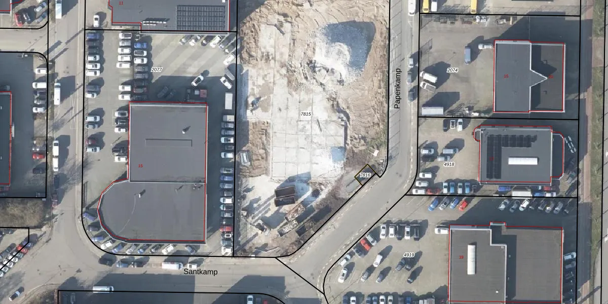 Het perceel waarop Papenkamp 22-E staat heeft een oppervlakte van 3758 m². Dit is een zeer groot perceel. De perceeloppervlakte wordt geregistreerd door het Kadaster. Gedetailleerde informatie over de maten van dit perceel kunt u vinden in het rapport Kadastrale kaart met maatvoering van Papenkamp 22-E.