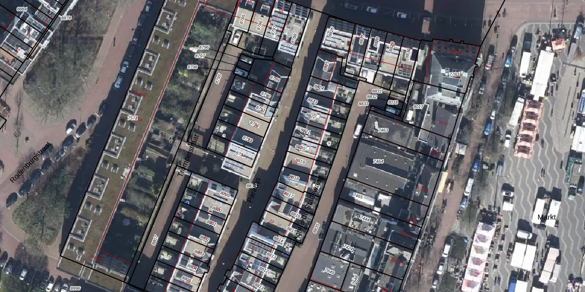 Het perceel waarop Paradijs 13 staat heeft een oppervlakte van 88 m². Dit is een klein perceel. De perceeloppervlakte wordt geregistreerd door het Kadaster. Gedetailleerde informatie over de maten van dit perceel kunt u vinden in het rapport Kadastrale kaart met maatvoering van Paradijs 13.