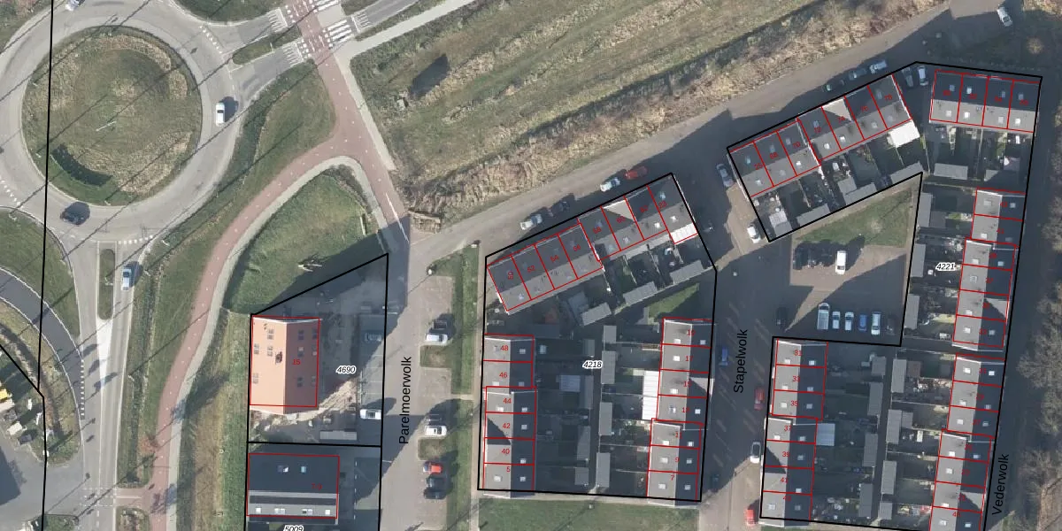 Het perceel waarop Parelmoerwolk 52 staat heeft een oppervlakte van 2245 m². Dit is een zeer groot perceel. De perceeloppervlakte wordt geregistreerd door het Kadaster. Gedetailleerde informatie over de maten van dit perceel kunt u vinden in het rapport Kadastrale kaart met maatvoering van Parelmoerwolk 52.