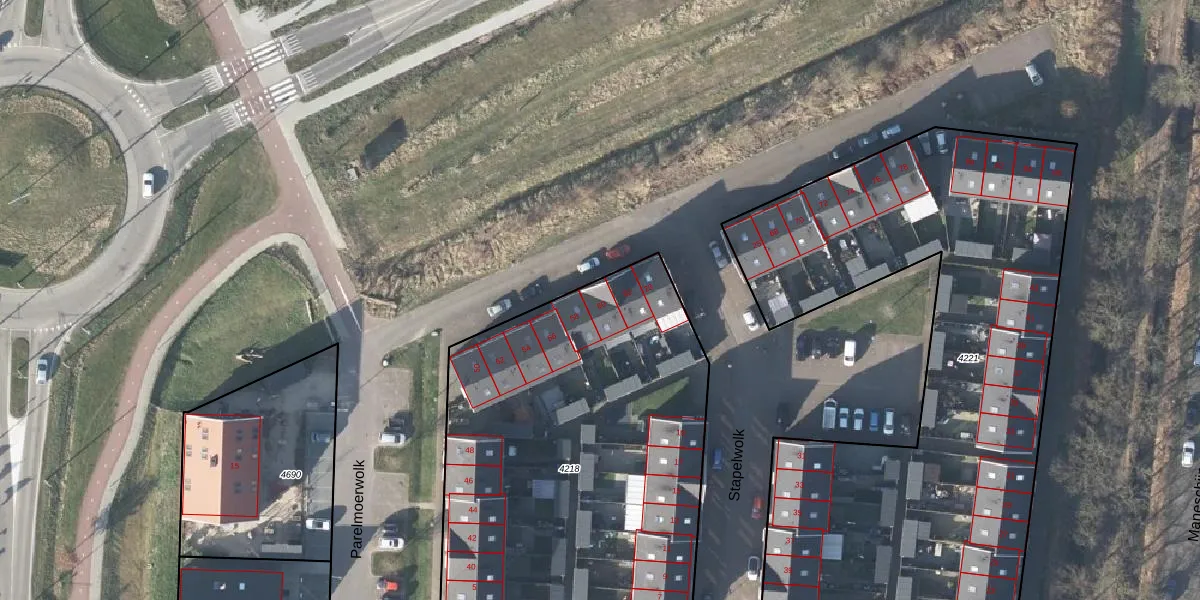 Het perceel waarop Parelmoerwolk 60 staat heeft een oppervlakte van 2245 m². Dit is een zeer groot perceel. De perceeloppervlakte wordt geregistreerd door het Kadaster. Gedetailleerde informatie over de maten van dit perceel kunt u vinden in het rapport Kadastrale kaart met maatvoering van Parelmoerwolk 60.