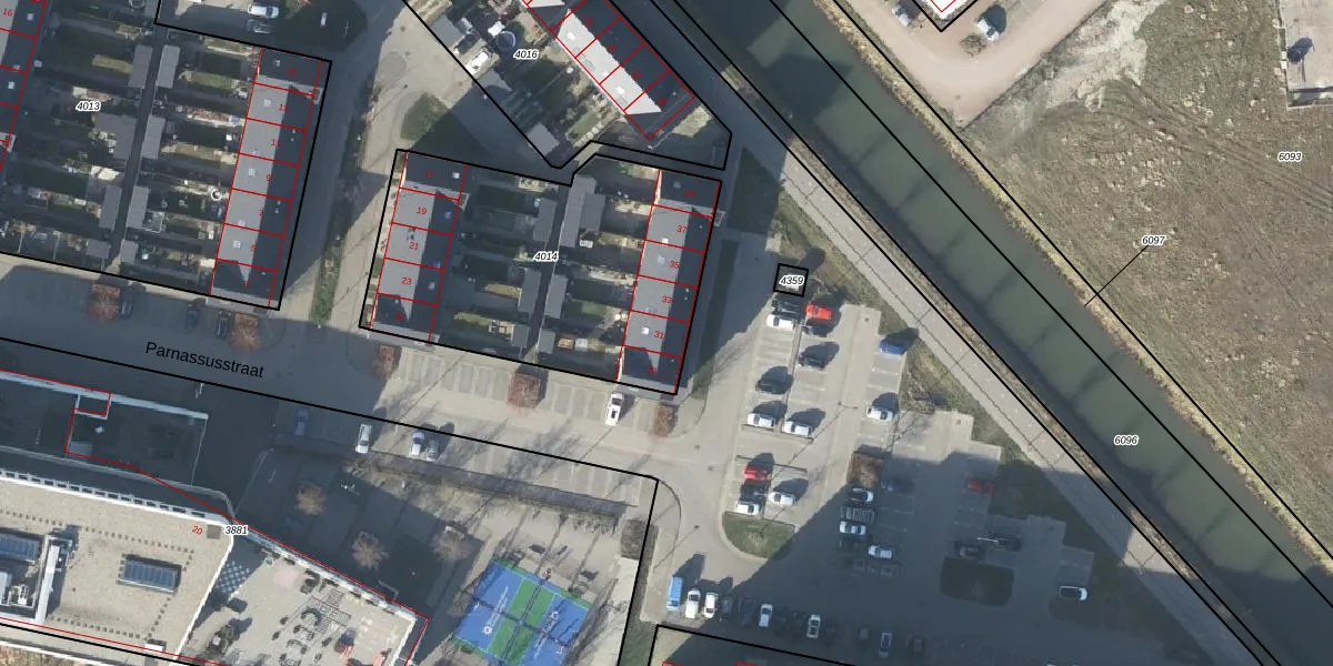 Parnassusstraat 31 is gelegen op kadastraal perceel AHM05AF4014. Deze kadastrale aanduiding is uniek en wordt gebruikt door het Kadaster om eigendomsrechten en andere zakelijke rechten vast te leggen. Het perceel maakt onderdeel uit van de kadastrale gemeente Arnhem.