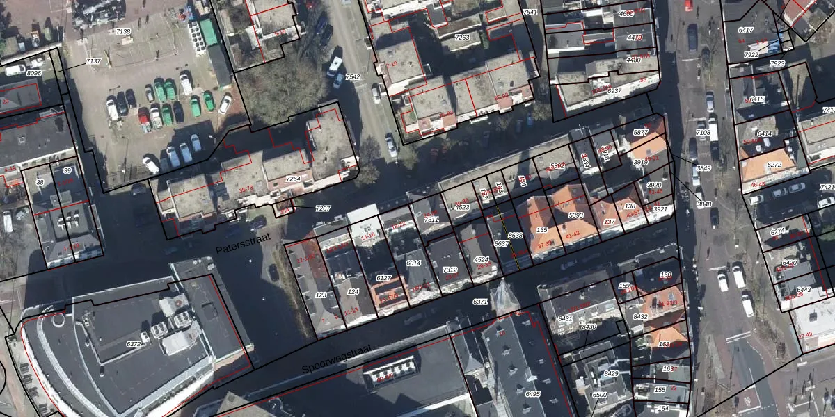 Het perceel waarop Patersstraat 24 staat heeft een oppervlakte van 81 m². Dit is een klein perceel. De perceeloppervlakte wordt geregistreerd door het Kadaster. Gedetailleerde informatie over de maten van dit perceel kunt u vinden in het rapport Kadastrale kaart met maatvoering van Patersstraat 24.