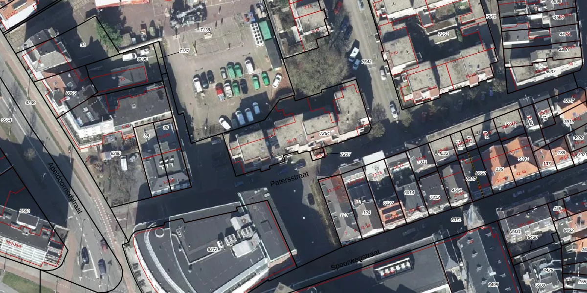 Het perceel waarop Patersstraat 63 staat heeft een oppervlakte van 840 m². Dit is een groot perceel. De perceeloppervlakte wordt geregistreerd door het Kadaster. Gedetailleerde informatie over de maten van dit perceel kunt u vinden in het rapport Kadastrale kaart met maatvoering van Patersstraat 63.
