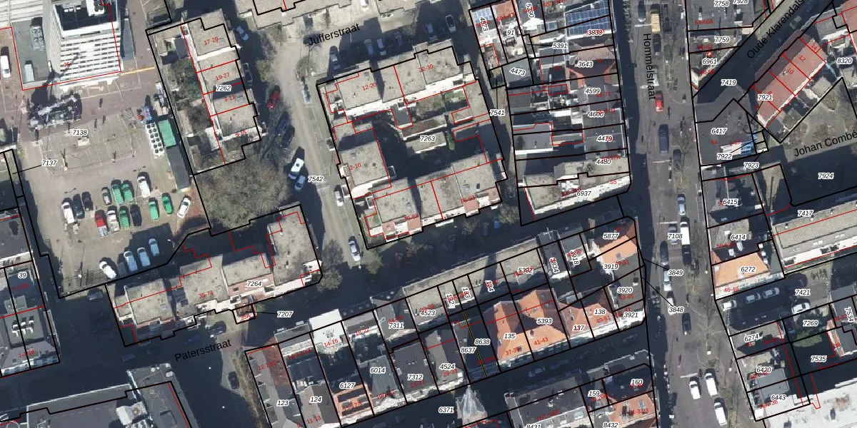 Het perceel waarop Patersstraat 75 staat heeft een oppervlakte van 1380 m². Dit is een zeer groot perceel. De perceeloppervlakte wordt geregistreerd door het Kadaster. Gedetailleerde informatie over de maten van dit perceel kunt u vinden in het rapport Kadastrale kaart met maatvoering van Patersstraat 75.