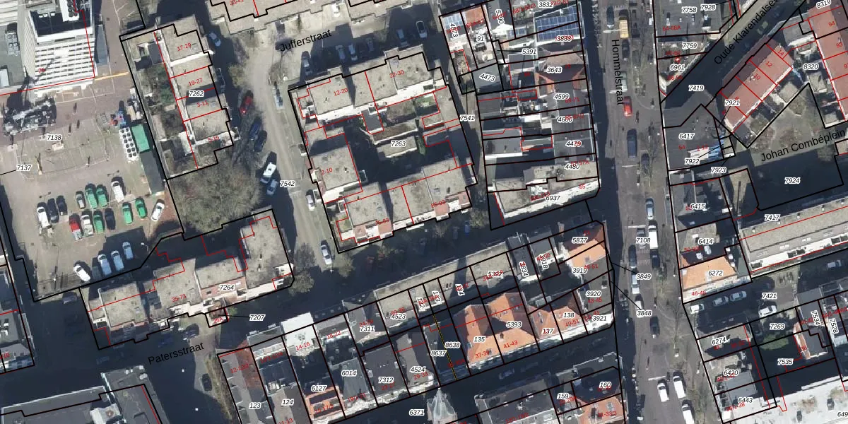 Het perceel waarop Patersstraat 87 staat heeft een oppervlakte van 1380 m². Dit is een zeer groot perceel. De perceeloppervlakte wordt geregistreerd door het Kadaster. Gedetailleerde informatie over de maten van dit perceel kunt u vinden in het rapport Kadastrale kaart met maatvoering van Patersstraat 87.