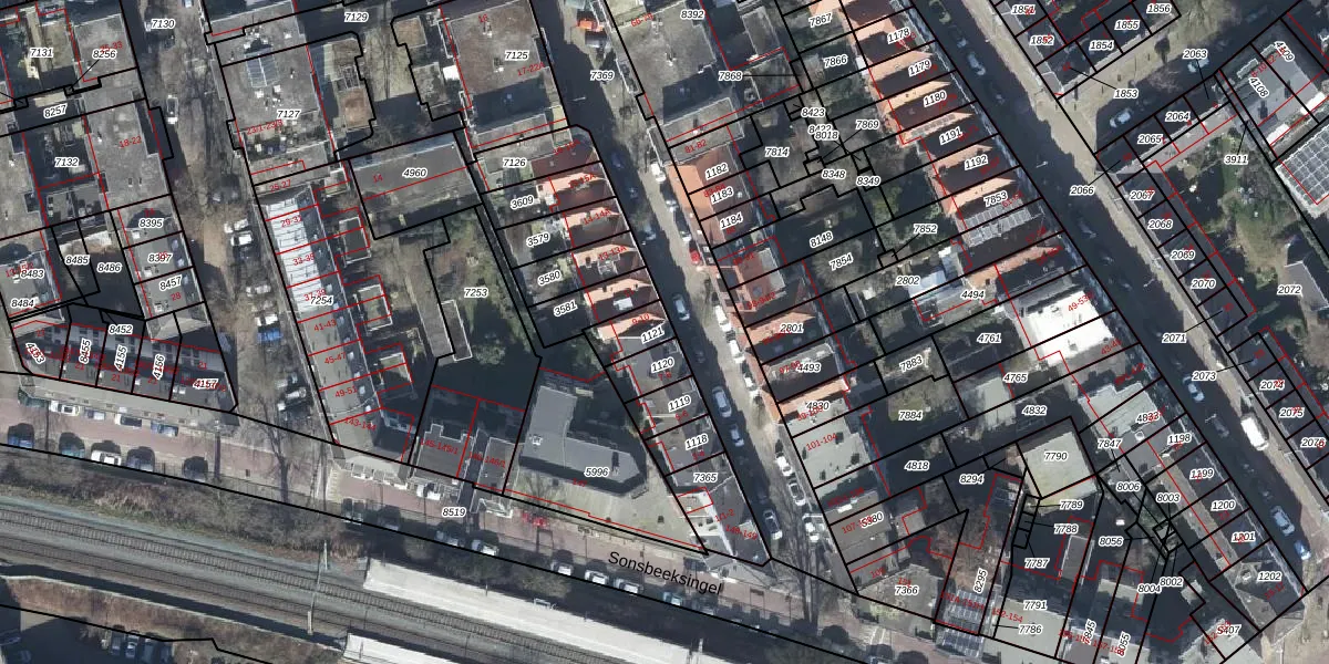 Het adres is gelegen op perceel 1121 in de sectie R en de kadastrale gemeente Arnhem. De kadastrale aanduiding is aldus AHM01-R-1121. Het perceel is kleiner dan gemiddeld in Arnhem. Het perceel is 80 m² groot, terwijl het gemiddelde ligt op 2527,39 m². Het grootste perceel in de kadastrale gemeente is 1,57 km². Het kleinste perceel heeft een oppervlakte van 0 m². Op het perceel liggen in totaal 2 adressen. De huidige grenzen van het perceel zijn digitaal in de Basisregistratie Kadaster (BRK) geregistreerd op 26-05-2003.