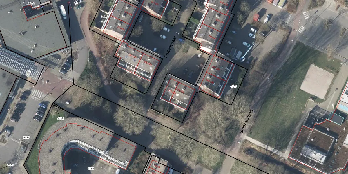 Het perceel waarop Pettenstraat 175 staat heeft een oppervlakte van 1756 m². Dit is een zeer groot perceel. De perceeloppervlakte wordt geregistreerd door het Kadaster. Gedetailleerde informatie over de maten van dit perceel kunt u vinden in het rapport Kadastrale kaart met maatvoering van Pettenstraat 175.