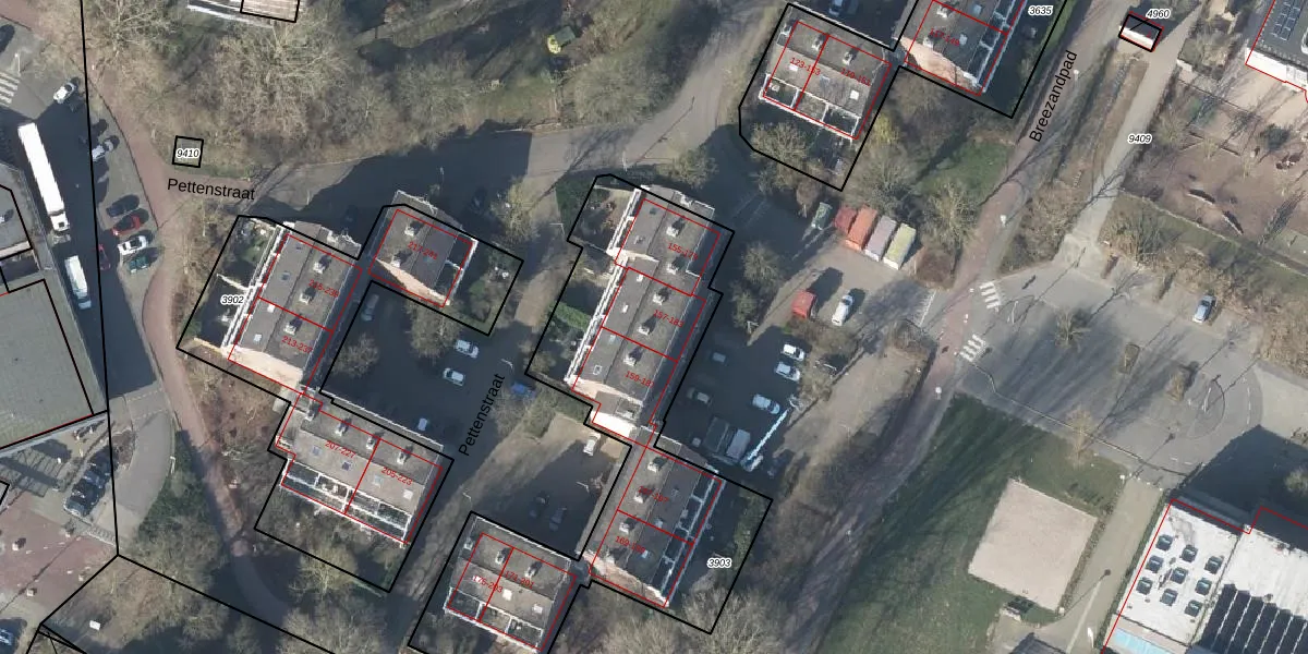 Het perceel waarop Pettenstraat 183 staat heeft een oppervlakte van 1756 m². Dit is een zeer groot perceel. De perceeloppervlakte wordt geregistreerd door het Kadaster. Gedetailleerde informatie over de maten van dit perceel kunt u vinden in het rapport Kadastrale kaart met maatvoering van Pettenstraat 183.