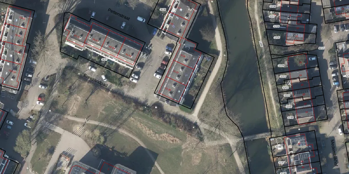 Het perceel waarop Pettenstraat 31 staat heeft een oppervlakte van 1303 m². Dit is een zeer groot perceel. De perceeloppervlakte wordt geregistreerd door het Kadaster. Gedetailleerde informatie over de maten van dit perceel kunt u vinden in het rapport Kadastrale kaart met maatvoering van Pettenstraat 31.