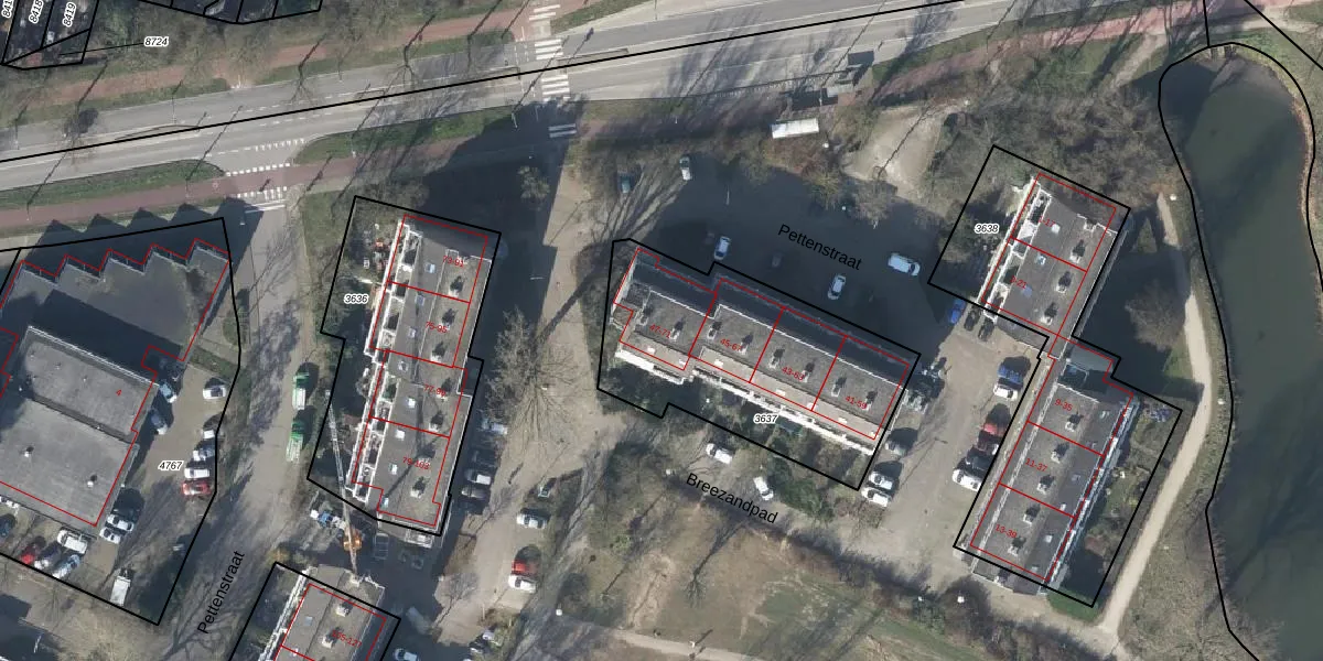 Het perceel waarop Pettenstraat 55 staat heeft een oppervlakte van 1046 m². Dit is een zeer groot perceel. De perceeloppervlakte wordt geregistreerd door het Kadaster. Gedetailleerde informatie over de maten van dit perceel kunt u vinden in het rapport Kadastrale kaart met maatvoering van Pettenstraat 55.