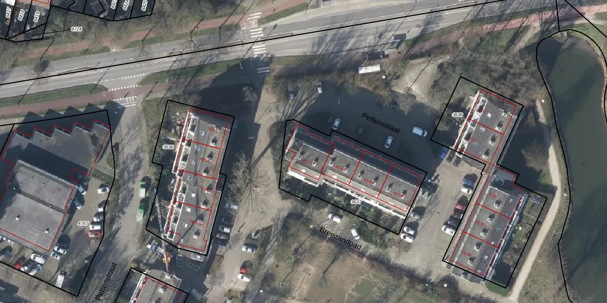 Het perceel waarop Pettenstraat 71 staat heeft een oppervlakte van 1046 m². Dit is een zeer groot perceel. De perceeloppervlakte wordt geregistreerd door het Kadaster. Gedetailleerde informatie over de maten van dit perceel kunt u vinden in het rapport Kadastrale kaart met maatvoering van Pettenstraat 71.