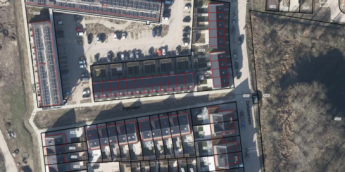 Het perceel waarop Pijlerdam 6 staat heeft een oppervlakte van 2385 m². Dit is een zeer groot perceel. De perceeloppervlakte wordt geregistreerd door het Kadaster. Gedetailleerde informatie over de maten van dit perceel kunt u vinden in het rapport Kadastrale kaart met maatvoering van Pijlerdam 6.