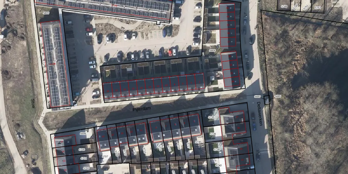 Het perceel waarop Pijlerdam 8 staat heeft een oppervlakte van 2385 m². Dit is een zeer groot perceel. De perceeloppervlakte wordt geregistreerd door het Kadaster. Gedetailleerde informatie over de maten van dit perceel kunt u vinden in het rapport Kadastrale kaart met maatvoering van Pijlerdam 8.