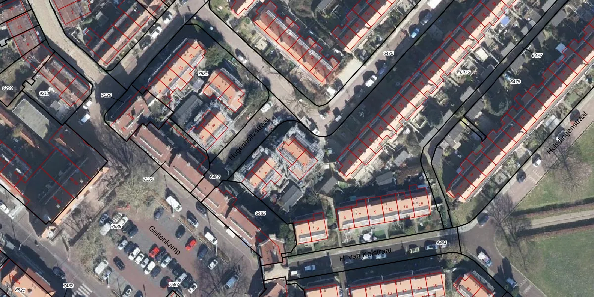 Het perceel waarop P.J. Troelstrastraat 6 staat heeft een oppervlakte van 5600 m². Dit is een zeer groot perceel. De perceeloppervlakte wordt geregistreerd door het Kadaster. Gedetailleerde informatie over de maten van dit perceel kunt u vinden in het rapport Kadastrale kaart met maatvoering van P.J. Troelstrastraat 6.