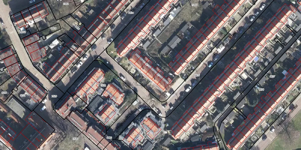 Het perceel waarop P.J. Troelstrastraat 7 staat heeft een oppervlakte van 6645 m². Dit is een zeer groot perceel. De perceeloppervlakte wordt geregistreerd door het Kadaster. Gedetailleerde informatie over de maten van dit perceel kunt u vinden in het rapport Kadastrale kaart met maatvoering van P.J. Troelstrastraat 7.