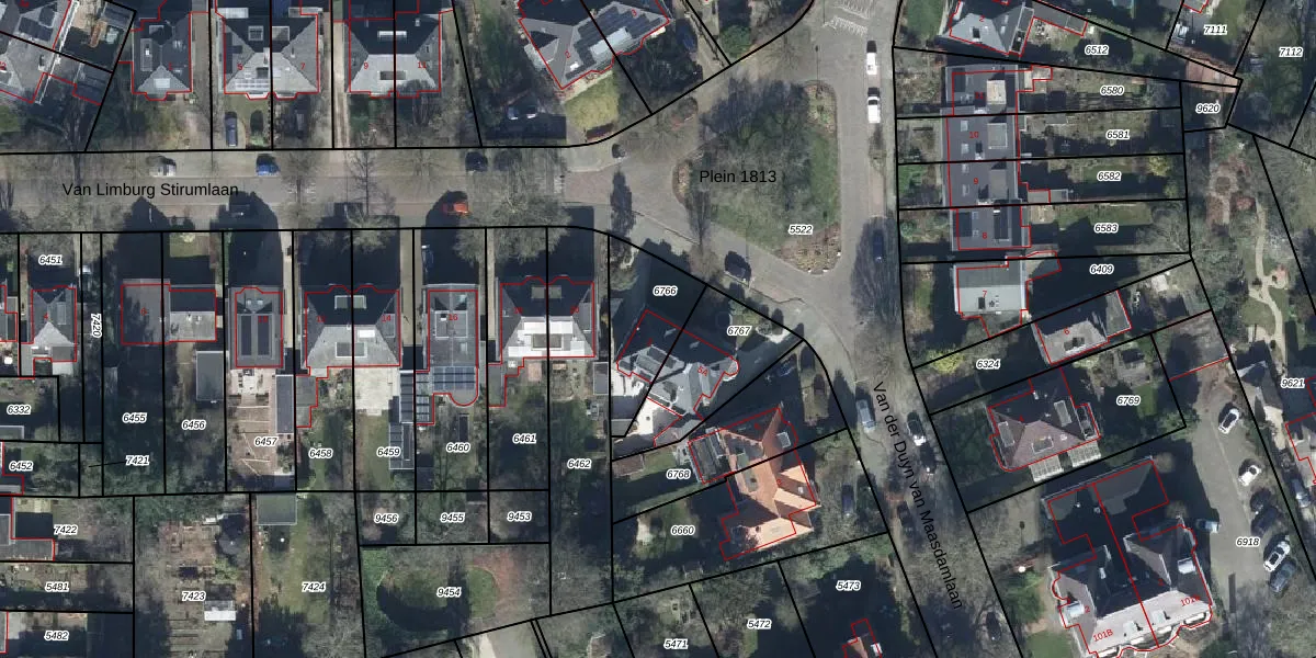 Plein 1813 5 is gelegen op kadastraal perceel AHM01C6766. Deze kadastrale aanduiding is uniek en wordt gebruikt door het Kadaster om eigendomsrechten en andere zakelijke rechten vast te leggen. Het perceel maakt onderdeel uit van de kadastrale gemeente Arnhem.