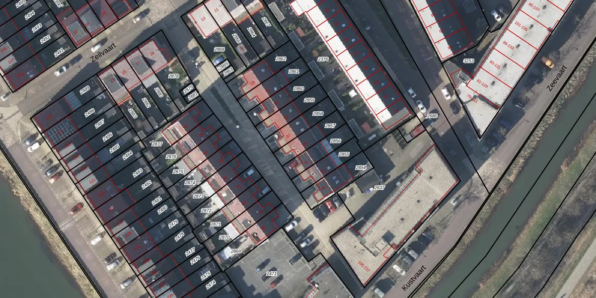 Gebruik de zoekbalk of klik op een perceel voor informatie over de adressen binnen dit perceel.