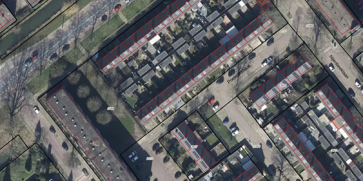 Het perceel waarop Poelwijkstraat 63 staat heeft een oppervlakte van 7472 m². Dit is een zeer groot perceel. De perceeloppervlakte wordt geregistreerd door het Kadaster. Gedetailleerde informatie over de maten van dit perceel kunt u vinden in het rapport Kadastrale kaart met maatvoering van Poelwijkstraat 63.