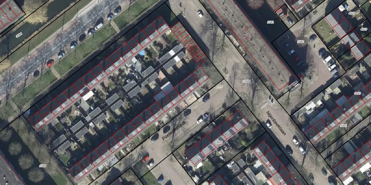 Het perceel waarop Poelwijkstraat 79 staat heeft een oppervlakte van 7472 m². Dit is een zeer groot perceel. De perceeloppervlakte wordt geregistreerd door het Kadaster. Gedetailleerde informatie over de maten van dit perceel kunt u vinden in het rapport Kadastrale kaart met maatvoering van Poelwijkstraat 79.