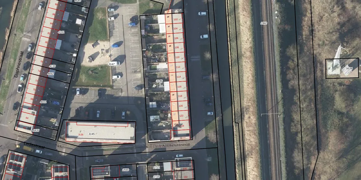 Het perceel waarop Polluxstraat 116 staat heeft een oppervlakte van 1731 m². Dit is een zeer groot perceel. De perceeloppervlakte wordt geregistreerd door het Kadaster. Gedetailleerde informatie over de maten van dit perceel kunt u vinden in het rapport Kadastrale kaart met maatvoering van Polluxstraat 116.