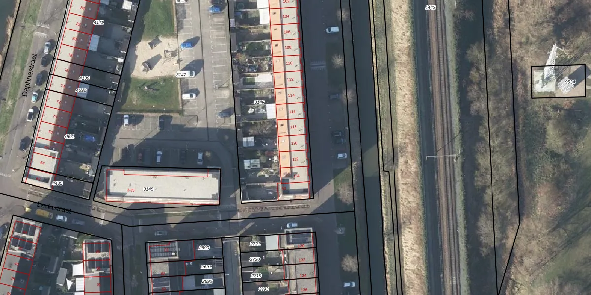 Het perceel waarop Polluxstraat 120 staat heeft een oppervlakte van 1731 m². Dit is een zeer groot perceel. De perceeloppervlakte wordt geregistreerd door het Kadaster. Gedetailleerde informatie over de maten van dit perceel kunt u vinden in het rapport Kadastrale kaart met maatvoering van Polluxstraat 120.