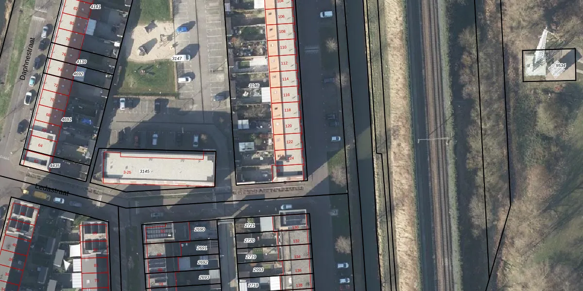 Het perceel waarop Polluxstraat 122 staat heeft een oppervlakte van 1731 m². Dit is een zeer groot perceel. De perceeloppervlakte wordt geregistreerd door het Kadaster. Gedetailleerde informatie over de maten van dit perceel kunt u vinden in het rapport Kadastrale kaart met maatvoering van Polluxstraat 122.