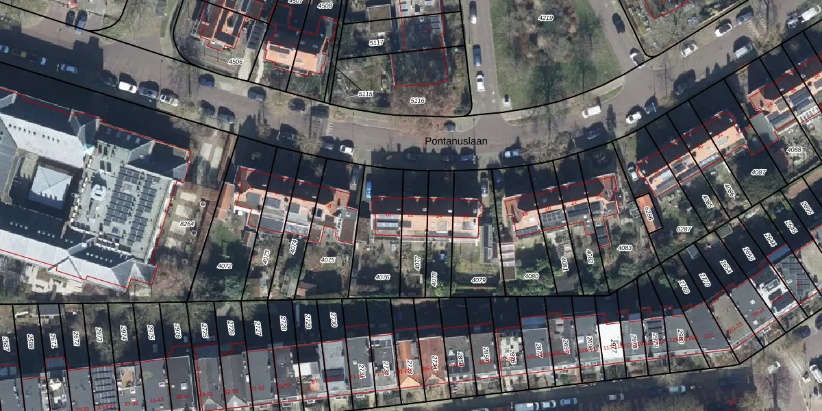 Pontanuslaan 12 is gelegen op kadastraal perceel AHM01N4077. Deze kadastrale aanduiding is uniek en wordt gebruikt door het Kadaster om eigendomsrechten en andere zakelijke rechten vast te leggen. Het perceel maakt onderdeel uit van de kadastrale gemeente Arnhem.