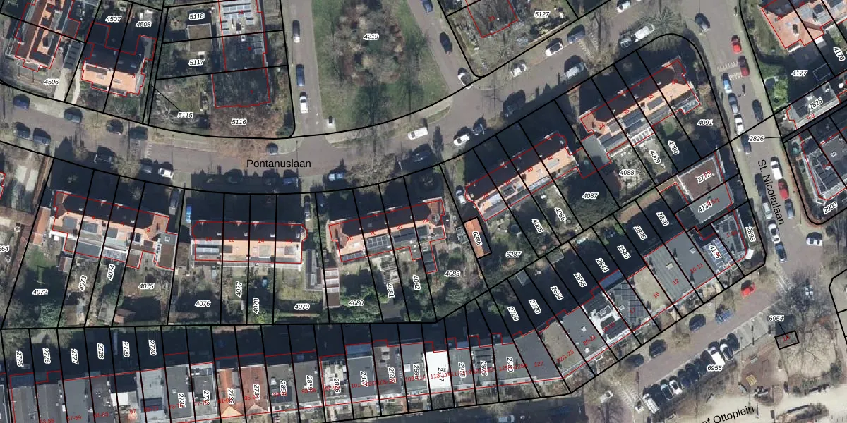 Het perceel waarop Pontanuslaan 24 staat heeft een oppervlakte van 385 m². Dit is een groot perceel. De perceeloppervlakte wordt geregistreerd door het Kadaster. Gedetailleerde informatie over de maten van dit perceel kunt u vinden in het rapport Kadastrale kaart met maatvoering van Pontanuslaan 24.