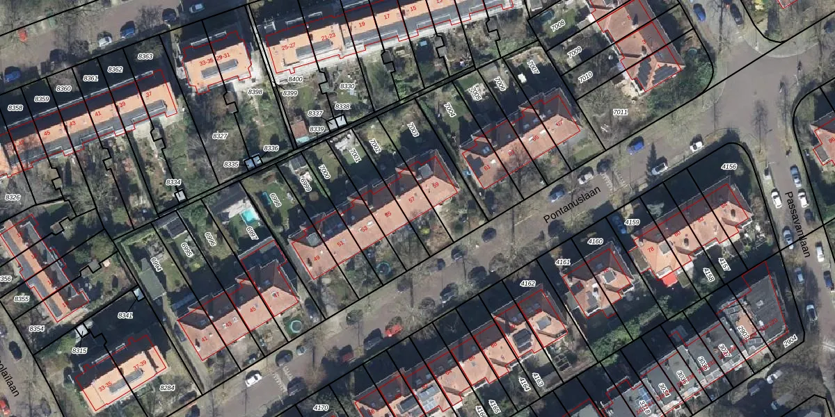 Het perceel waarop Pontanuslaan 57 staat heeft een oppervlakte van 243 m². Dit is een middelgroot perceel. De perceeloppervlakte wordt geregistreerd door het Kadaster. Gedetailleerde informatie over de maten van dit perceel kunt u vinden in het rapport Kadastrale kaart met maatvoering van Pontanuslaan 57.