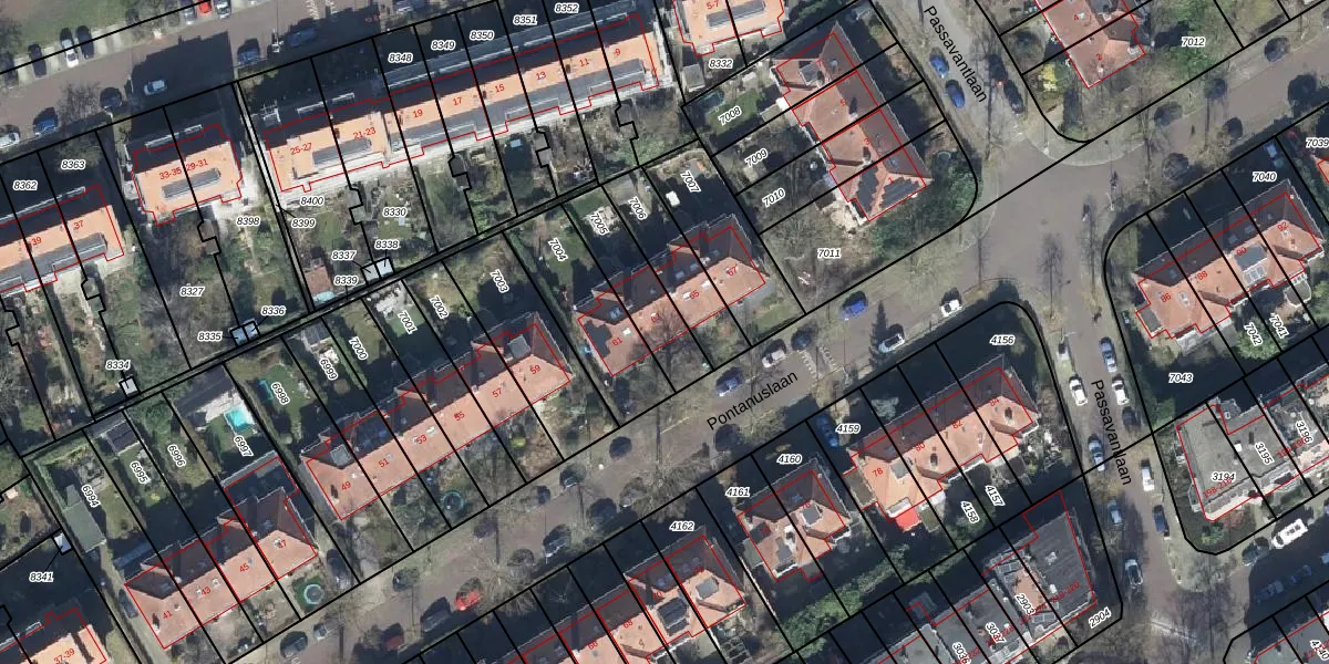 Het perceel waarop Pontanuslaan 63 staat heeft een oppervlakte van 215 m². Dit is een middelgroot perceel. De perceeloppervlakte wordt geregistreerd door het Kadaster. Gedetailleerde informatie over de maten van dit perceel kunt u vinden in het rapport Kadastrale kaart met maatvoering van Pontanuslaan 63.