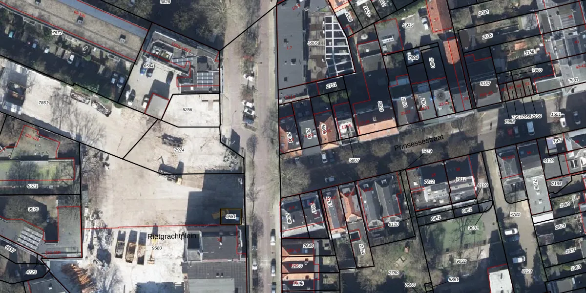 Het perceel waarop Prinsessestraat 1 staat heeft een oppervlakte van 106 m². Dit is een middelgroot perceel. De perceeloppervlakte wordt geregistreerd door het Kadaster. Gedetailleerde informatie over de maten van dit perceel kunt u vinden in het rapport Kadastrale kaart met maatvoering van Prinsessestraat 1.