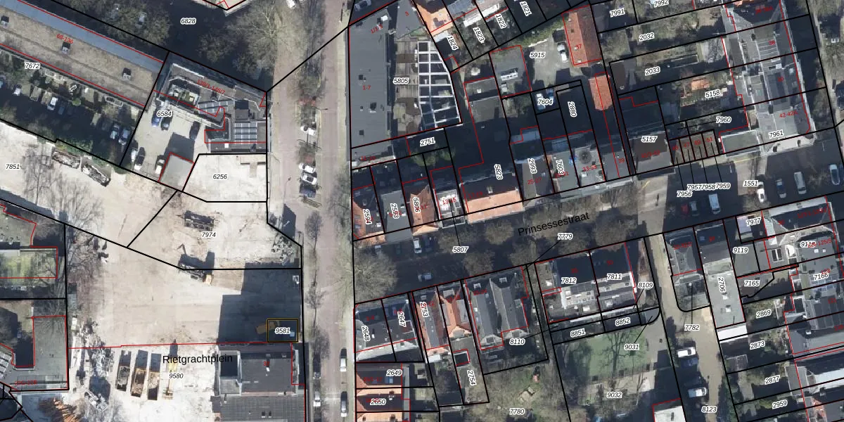 Het perceel waarop Prinsessestraat 11 staat heeft een oppervlakte van 103 m². Dit is een middelgroot perceel. De perceeloppervlakte wordt geregistreerd door het Kadaster. Gedetailleerde informatie over de maten van dit perceel kunt u vinden in het rapport Kadastrale kaart met maatvoering van Prinsessestraat 11.