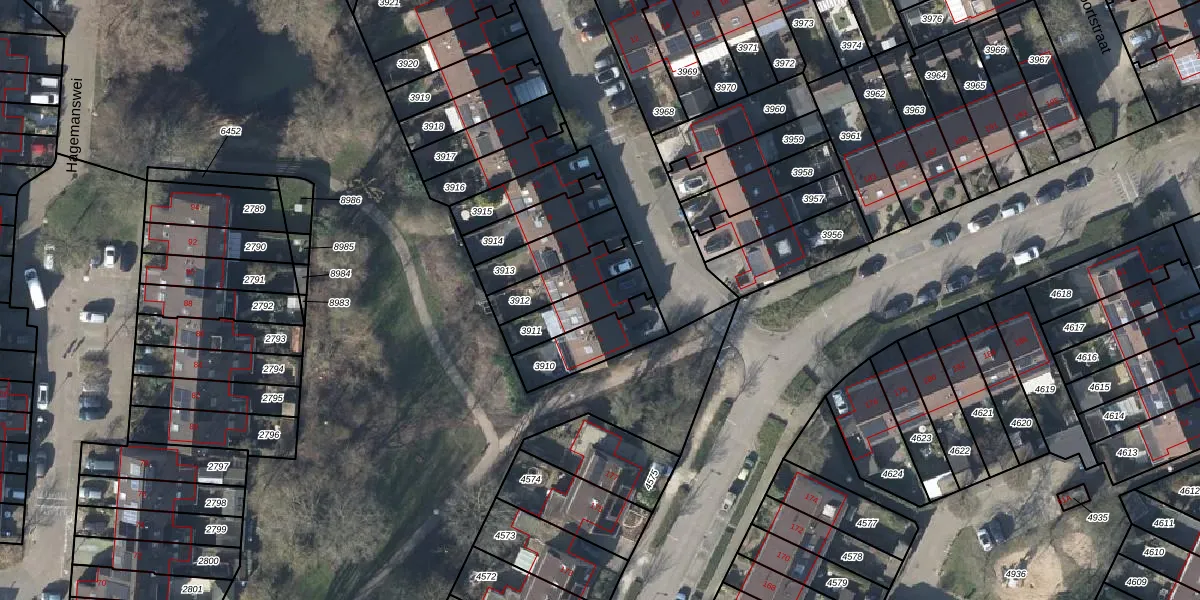 Gebruik de zoekbalk of klik op een perceel voor informatie over de adressen binnen dit perceel.