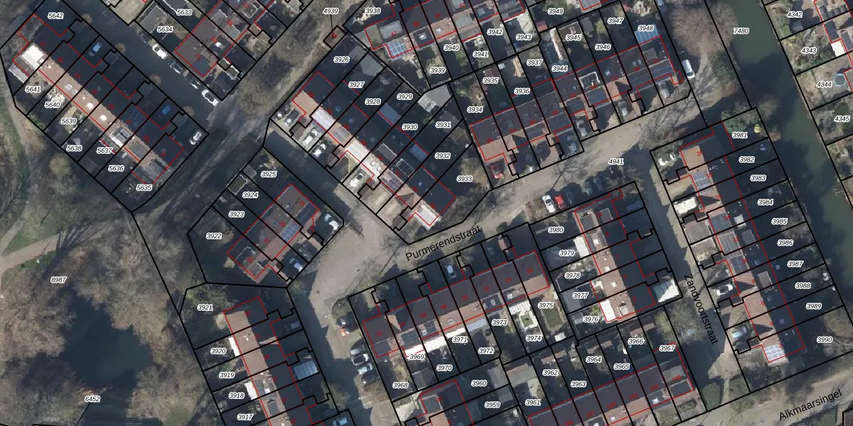 Gebruik de zoekbalk of klik op een perceel voor informatie over de adressen binnen dit perceel.